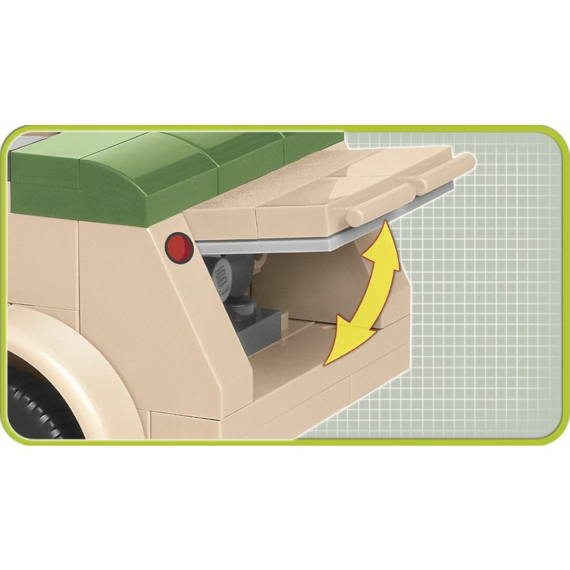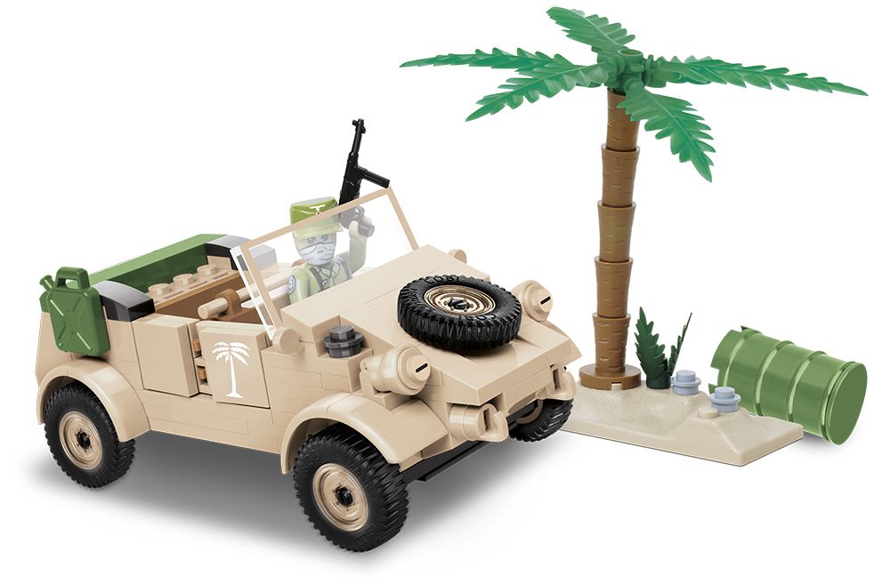 Postavte si model KdF 82, nazývaný také Kübelwagen nebo Kaďour. Byl to lehký vojenský osobní automobil s motorem vzadu a poháněnou zadní nápravou, stavěný na upraveném podvozku VW Brouk a vyráběný v letech 1940–1945. Konstruktérem vozu byl Ferdinand Porsche, rodák z Vratislavic nad Nisou. Sestavený model má rozměry 13 x 6 cm. V balení najdete 195 kostek stavebnice a 1 figurku vojáka.