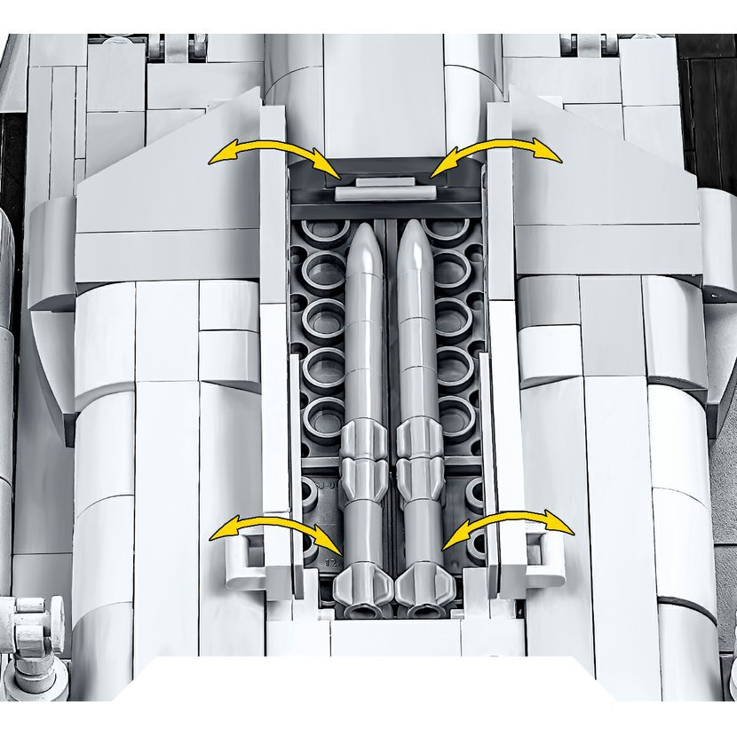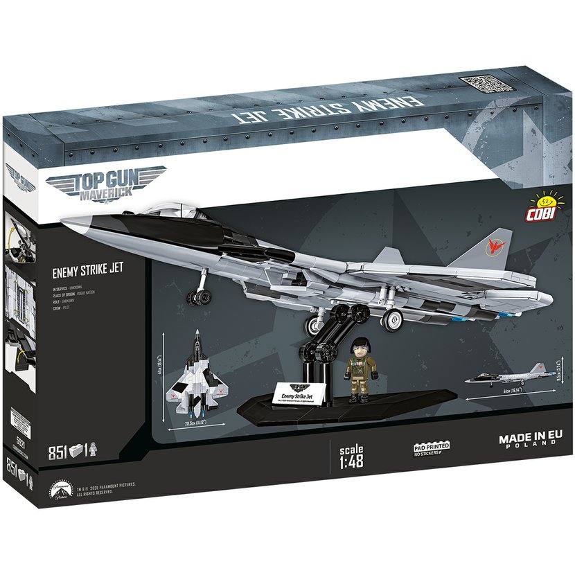 Stavebnice Su-57 Felon od COBI v měřítku 1:48 je věrným modelem fiktivní stíhačky z Top Gun: Maverick, která v příběhu představovala záhadné síly neznámého blízkovýchodního národa. Barevné schéma a značení byly pečlivě zrekonstruovány z filmového originálu – přesně tak, jak vypadají na obrazovce! Stejná digitální kamufláž, stejné barvy a stejná atmosféra tajemna a hrůzy, která obklopovala Mavericka a jeho učně během jejich vrcholné mise.