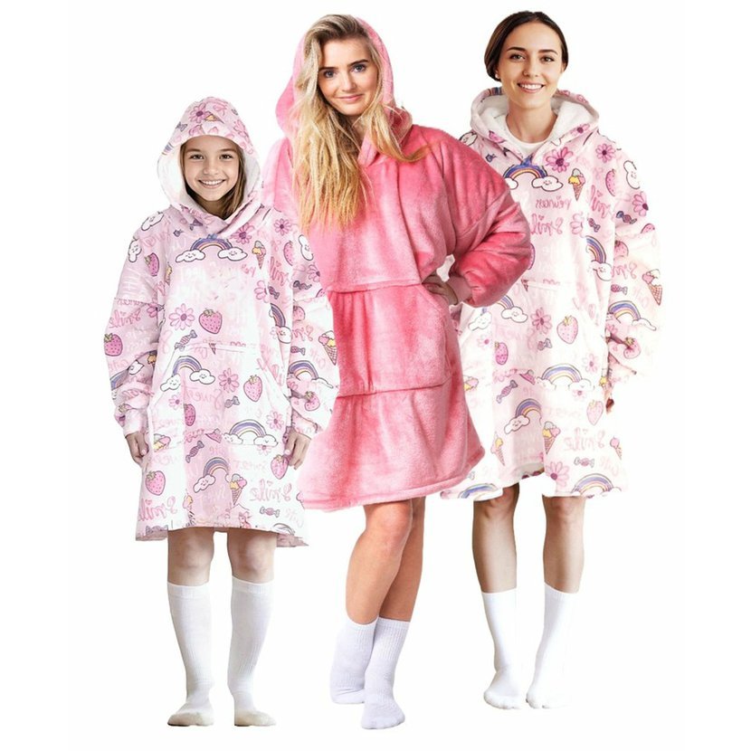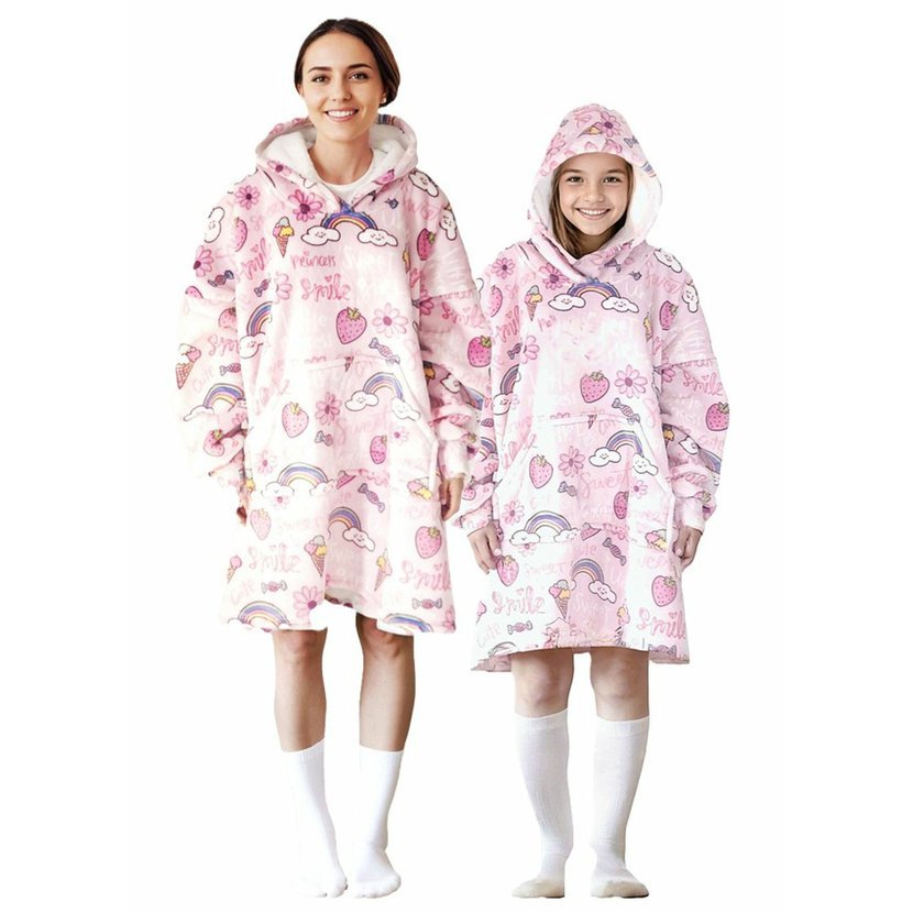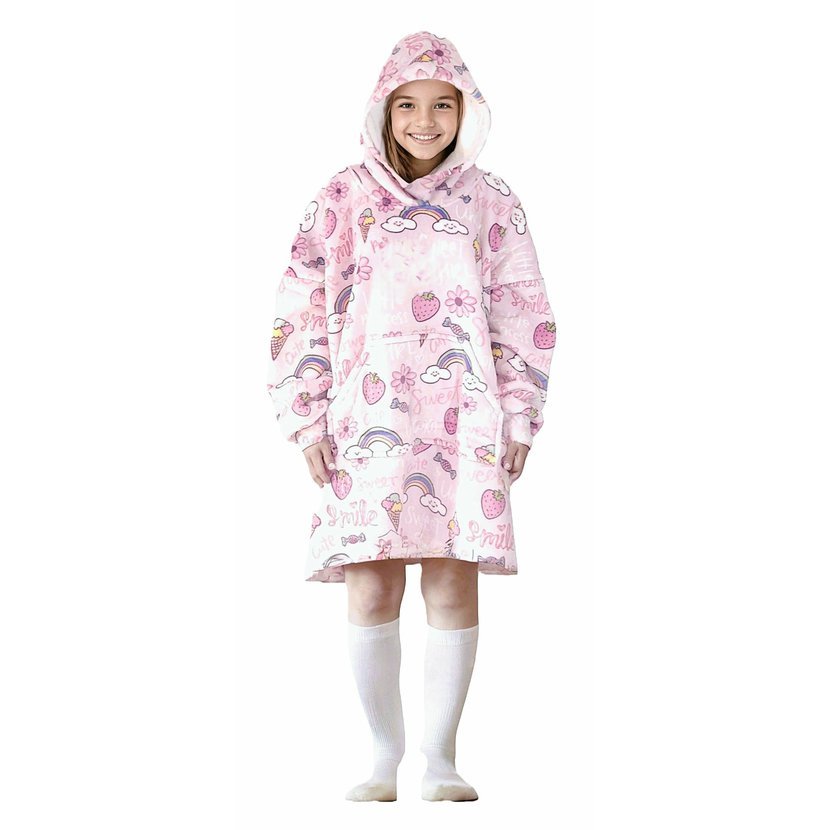 Cozy Noxxiez CH341 Sladkosti potisk - hřejivá televizní mikinová deka s kapucí pro děti 7 - 12 let