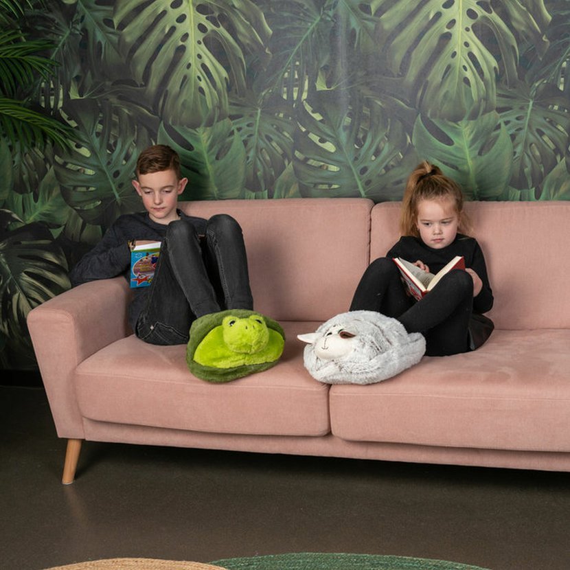 Jednodílný měkoučký a teploučký obří domácí pantofel, který slouží jako ohřívač nohou a zároveň může sloužit i jako designový doplněk nebo hračka, protože děti milují roztomilé věci. Super měkká výplň a pohodlný vnitřek zajistí přirozené zahřátí nohou bez rizika spálení nebo přehřátí. Vhodné pro vnitřní použití, ideální pro odpočinek na pohovce nebo posteli. Noste je při sledování televize, hraní her, práci na počítači, čtení knihy či jiných odpočinkových aktivitách, u kterých sedíte nebo ležíte. Tato produktová řada nabízí různé motivy zvířátek a tak každý člen rodiny může mít svého zvířecího přítele u nohy. V nabídce Cozy Noxxiez najdete v mnoha případech i hřejivý plyšový polštář 3 v 1 nebo deku s kapucí a kapsami s motivem stejného zvířátka a můžete mít tak celou zahřívací sadu ve stejném designu. V roce 2023 přibyly v nabídce, jako úplná novinka, i televizní mikinové deky pro děti ve věku 3 - 6 let a 7 - 12 let, které také tematicky patří k některým kolekcím.