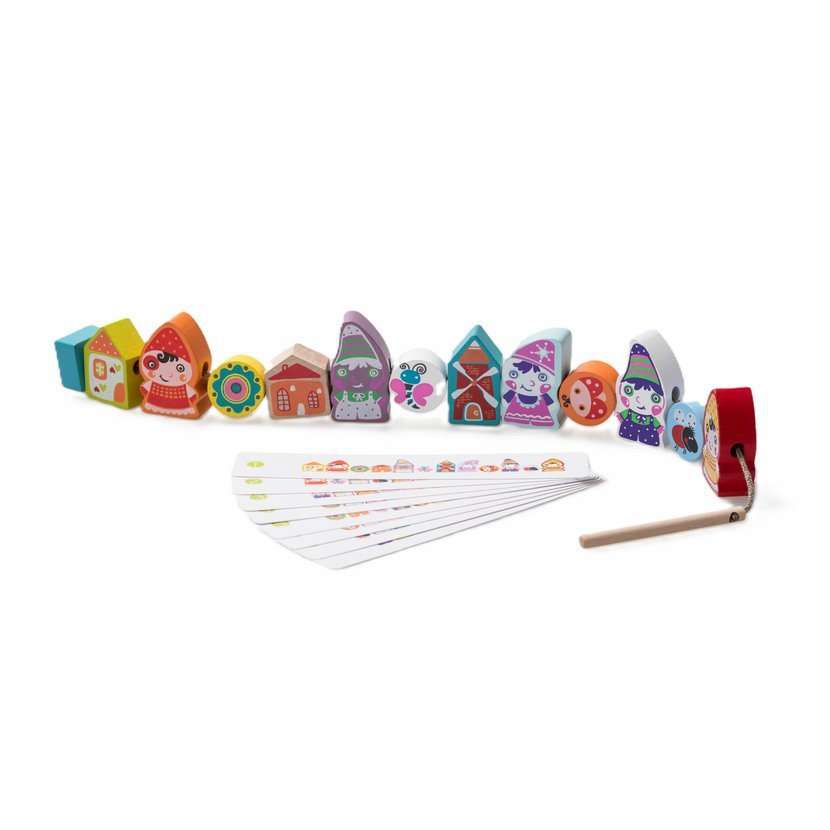 Navlékací dřevění trpaslíci jsou ideální hrou pro procvičení jemné motoriky, trpělivosti a paměti. Sada nabízí 12 dřevěných navlékacích prvků s trpaslíky, jejich domečky s různými doplňky, jednu tkaničku s dřevěným kolíčkem na prostrkování na jedné straně a zarážkou na druhé straně a 8 předloh s různě seřazenými tematickými prvky, podle kterých děti jednotlivé dílky navlékají. Zdatnější hráči si pak mohou předlohu jen prohlédnout a zkusit navlékat zpaměti.
