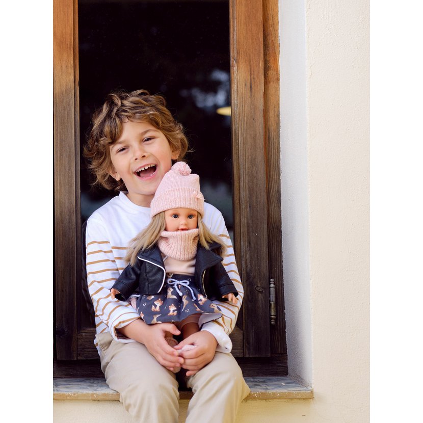 Ručně vyrobená panenka s měkkým látkovým tělem. Velikost 40 cm, materiál: vinyl, bavlna. Vyrobeno ve Španělsku. Doporučený věk od 3 let.