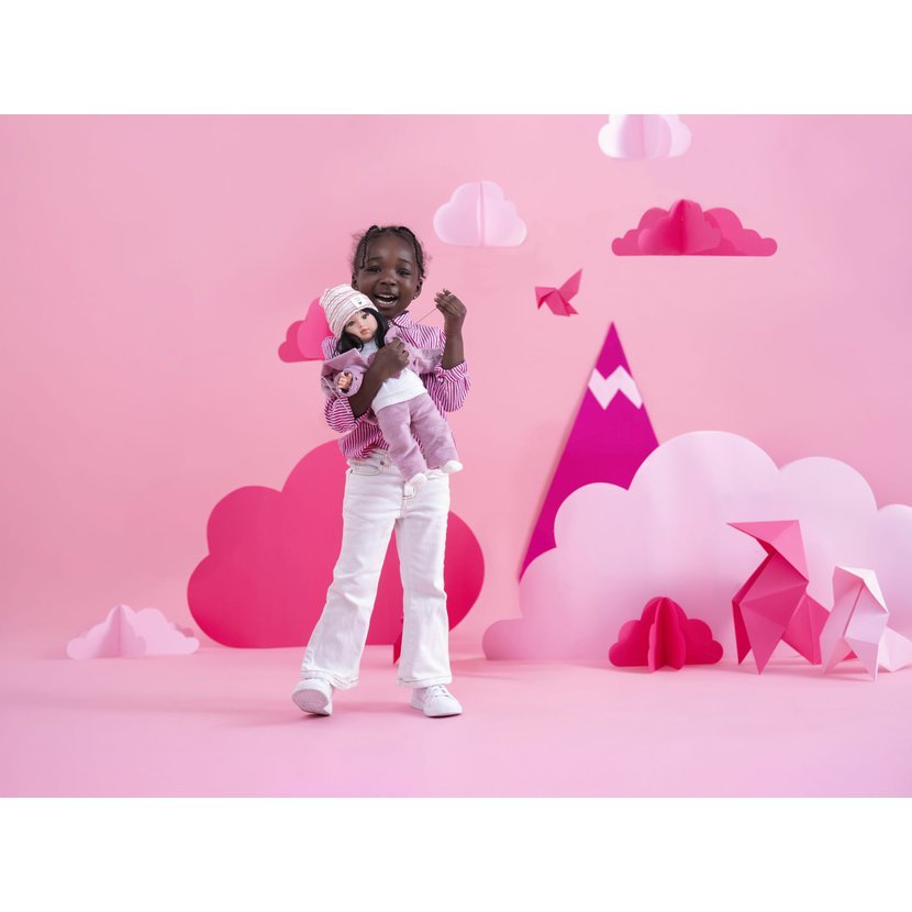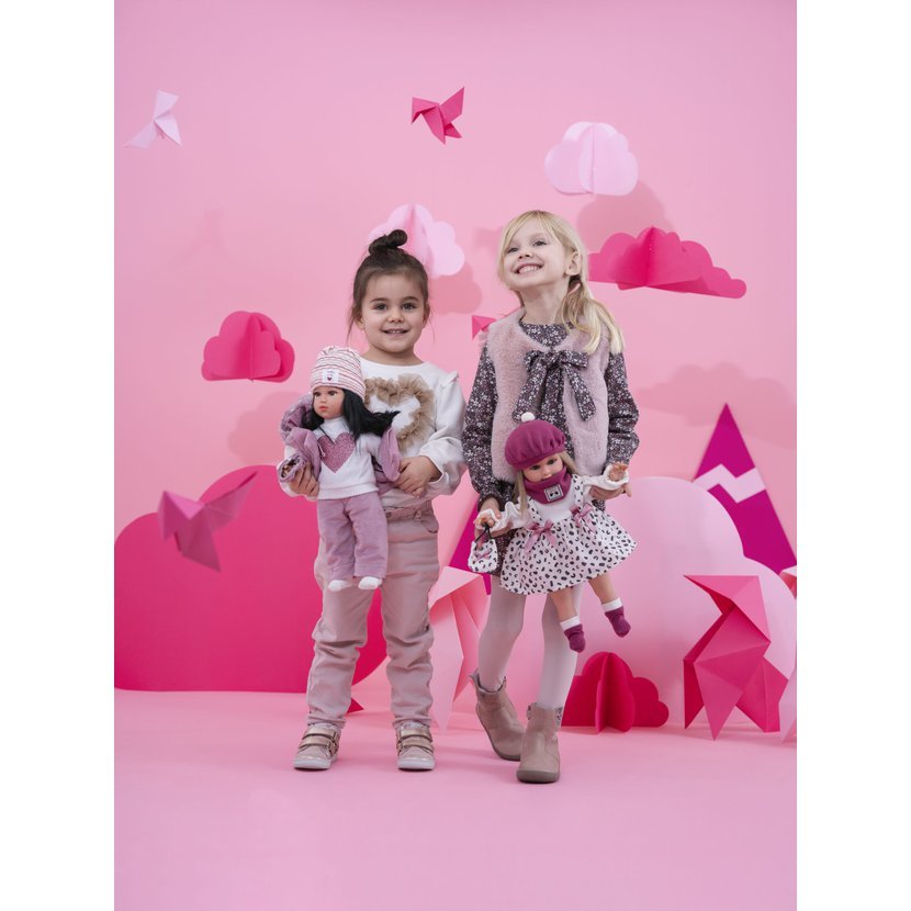 Ručně vyrobená panenka s měkkým látkovým tělem. Velikost 40 cm, materiál: vinyl, bavlna. Vyrobeno ve Španělsku. Doporučený věk od 3 let.