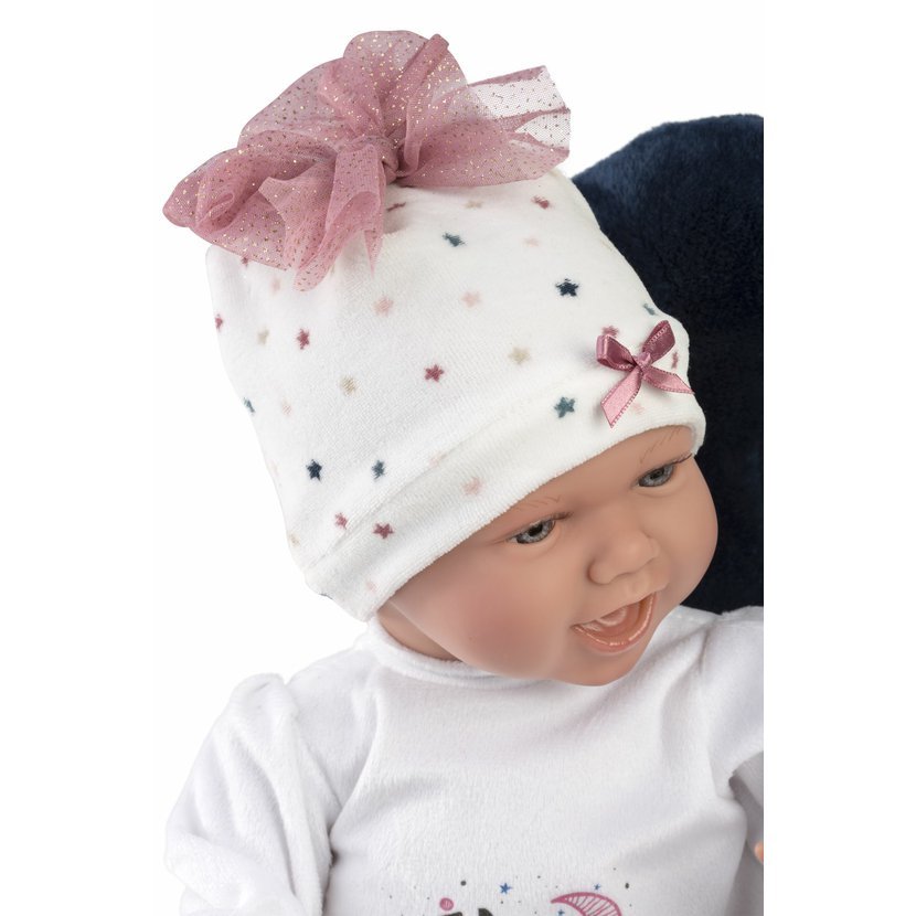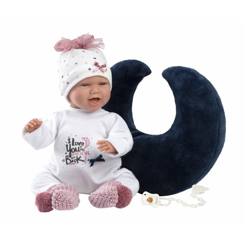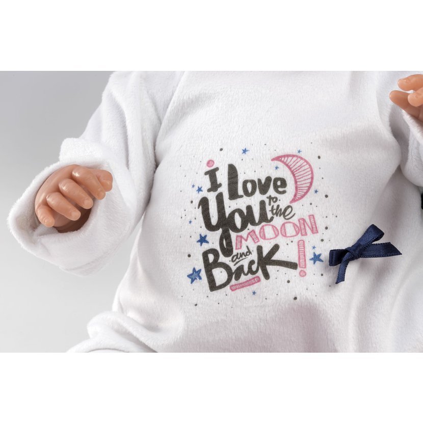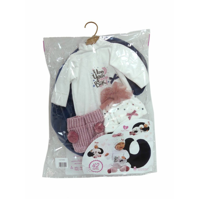 3dílný obleček s kojícím polštářem pro panenku miminko NEW BORN Llorens velikosti 40-42 cm. Vyrobeno ručně ve Španělsku, baleno v igelitovém obalu s plastovým ramínkem. Doporučený věk od 3 let.