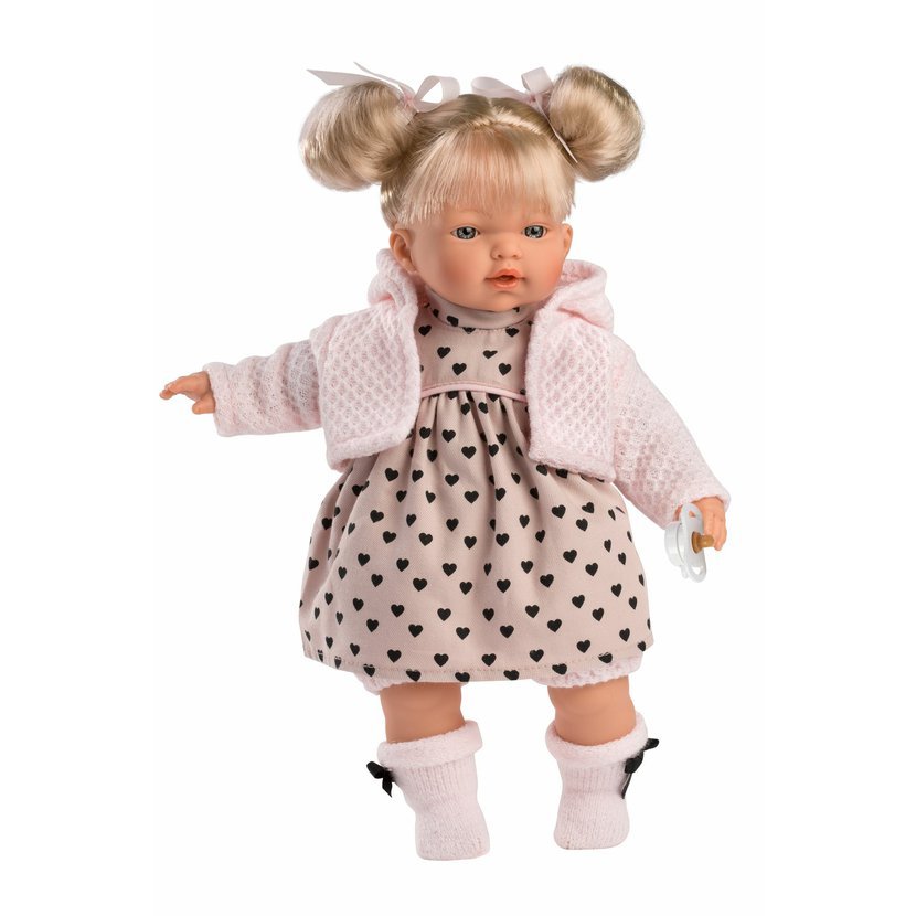 4dílný obleček pro panenku Llorens velikosti 33 cm. Vyrobeno ručně ve Španělsku, baleno v igelitovém obalu s plastovým ramínkem. Doporučený věk od 3 let.