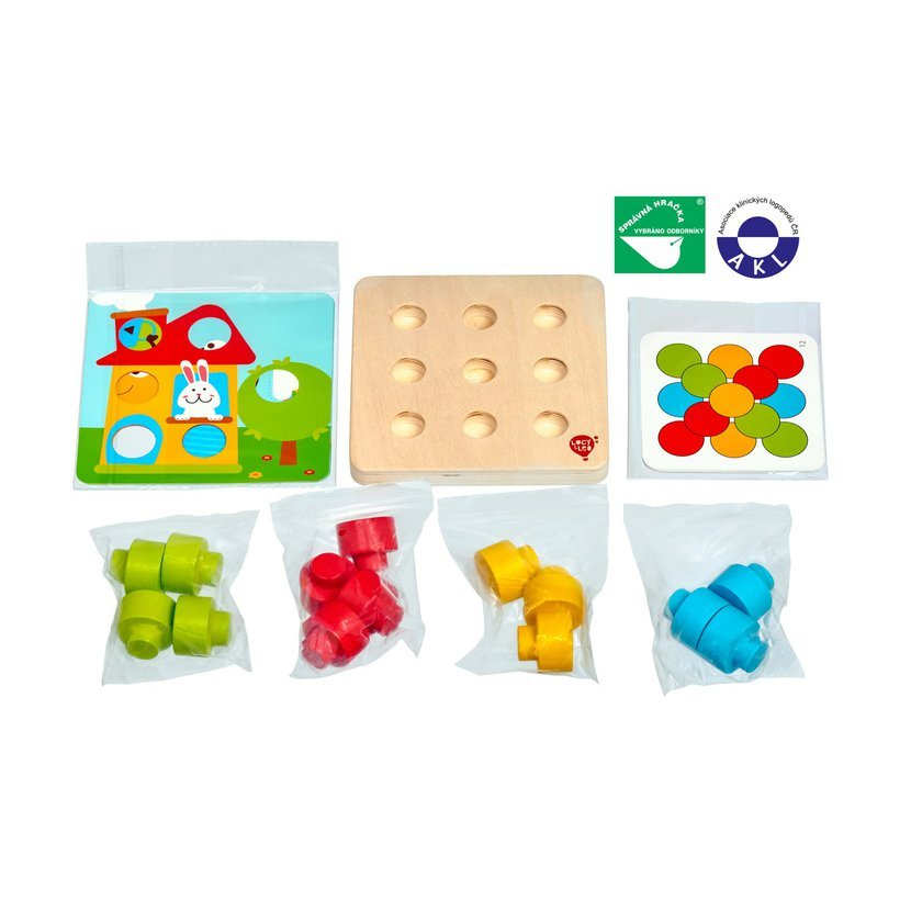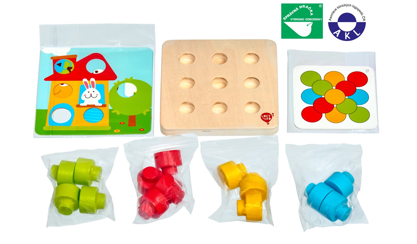 Lucy & Leo 220 Barevná mozaika - dřevěná hra s velkými kolíky a předlohami