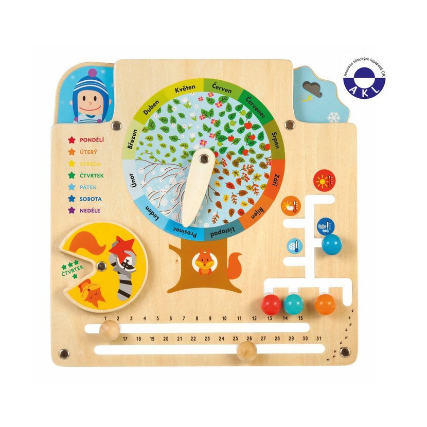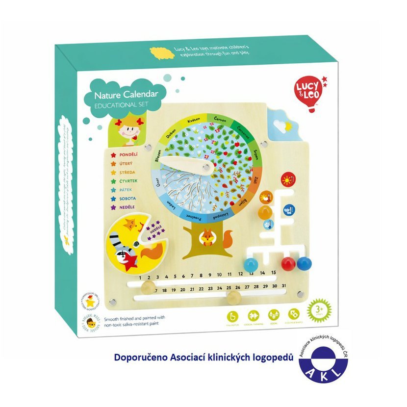 Kalendář přírody je dřevěná vzdělávací hračka, která seznamuje dítě ve věku od 3 let se zajímavostmi ročních období. Uprostřed dřevěné hrací desky je listnatý ovocný strom s pohyblivým ukazatelem, zobrazující 12 kalendářních měsíců. Každé roční období se vyznačuje svými vlastními znaky, takže dítě od raného věku bude spojovat zimu se zasněženými stromy a holými větvemi, jaro s květy a čerstvou zelení, léto s voňavým ovocem a podzim s opadáváním listů. Kromě ročních období se dítě naučí poznávat i dny v týdnu, počet dní v měsíci, rozpoznat příslušné variabilní teploty v jednotlivých ročních obdobích, povětrnostní podmínky a nebo zvolit vhodné oblečení do daného počasí. Hračka rozvíjí motorické dovednosti a logické myšlení. Balení obsahuje hrací desku s různými hracími prvky. Tato hračka je označována jako Montessori pomůcka.