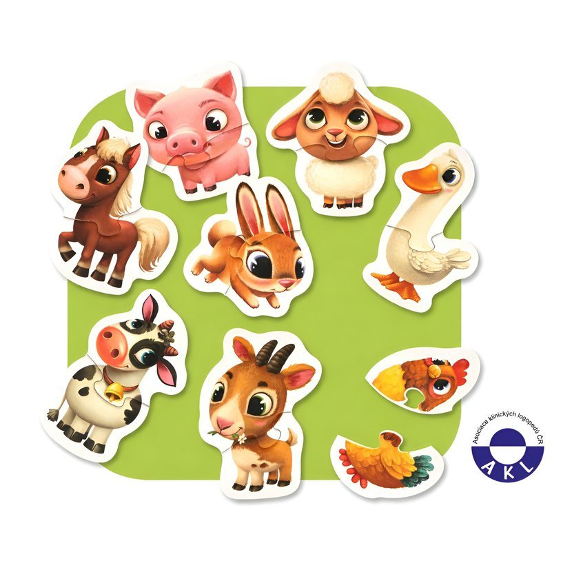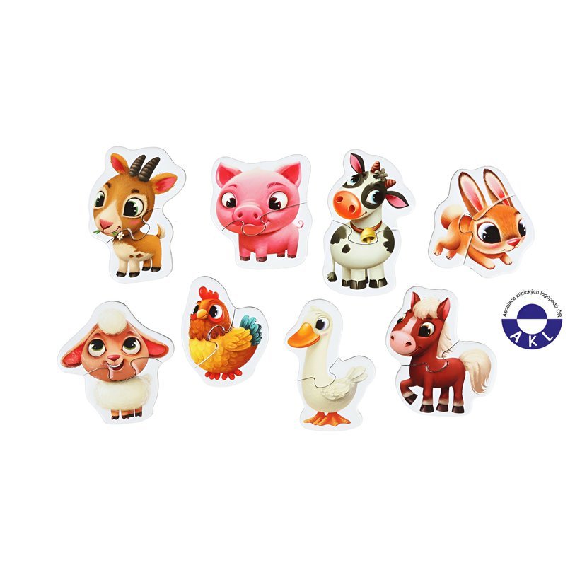 Naučné puzzle Domácí zvířátka obsahuje 16 velkých pevných puzzlů, ze kterých poskládáte 8 samostatných obrázků zvířátek žijících na farmě. Naučné puzzle je skvělá hra pro malé děti, která u nich rozvíjí logické myšlení, představivost, kreativitu, jemnou motoriku a různé poznávací znalosti.